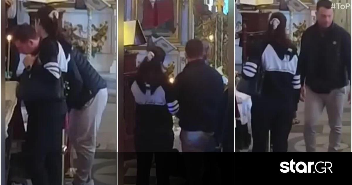 Στο πλευρό του ήταν η εγκυμονούσα σύζυγός του, Δήμητρα Βαμβακούση, η μητέρα της και άλλοι συγγενείς. Εικόνες μέσα από τον ιερό ναό δημοσίευσε η σελίδα «ό,τι συμβαίνει στη Σκιάθο news».