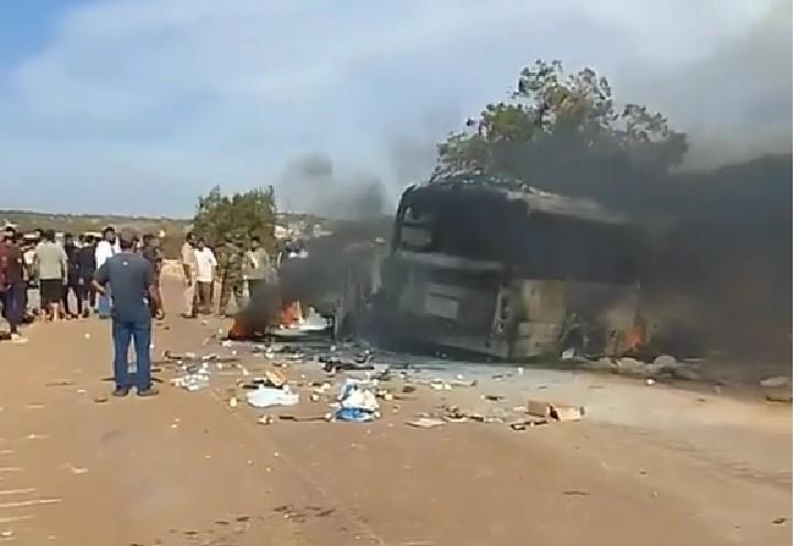 Όπως είπε ο κ. Σαγιάνος η οικογένεια που επέβαινε στο επιβατικό όχημα απανθρακώθηκε καθώς επίσης και τα πέντε άτομα που βρισκόντουσαν μπροστά αριστερά στο λεωφορείο.