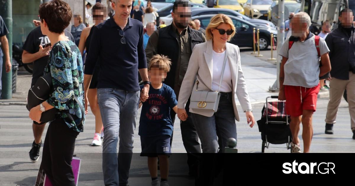 Βόλτα στο κέντρο της Αθήνας έκανε ο Κώστας Μπακογιάννης με τη σύζυγό του, Σία Κοσιώνη και τον γιο τους, Δήμο.