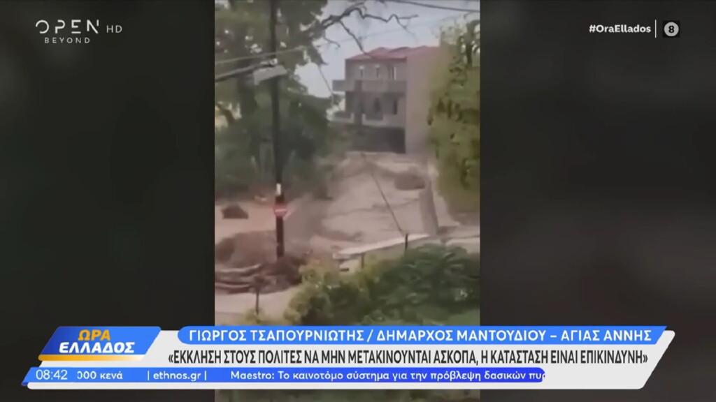 Συναγερμός στο Μαντούδι λόγω της κακοκαιρίας Elias με τον Δήμαρχο Μαντουδίου – Αγίας Άννης, Γιώργο Τσαπουρνιώτη, να αναφέρει ότι “βουλιάζει” η περιοχή λόγω του μεγάλου όγκου βροχής που πέφτει.