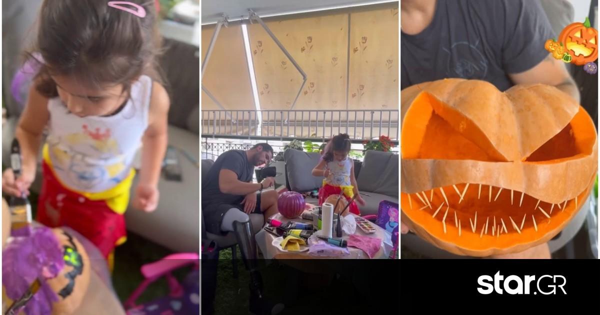 Στο βίντεο που δημοσίευσε η παρουσιάστρια του Breakfast@Star, όλη η οικογένεια συμμετείχε στη διαδικασία με τη Μελίτα να σκαλίζει το εσωτερικό της κολοκύθας, τον Ετεοκλή να δημιουργεί με το μαχαίρι το στόμα και τα μάτια και μετά όλοι μαζί να τις ζωγραφίζουν εξωτερικά με πινέλα.