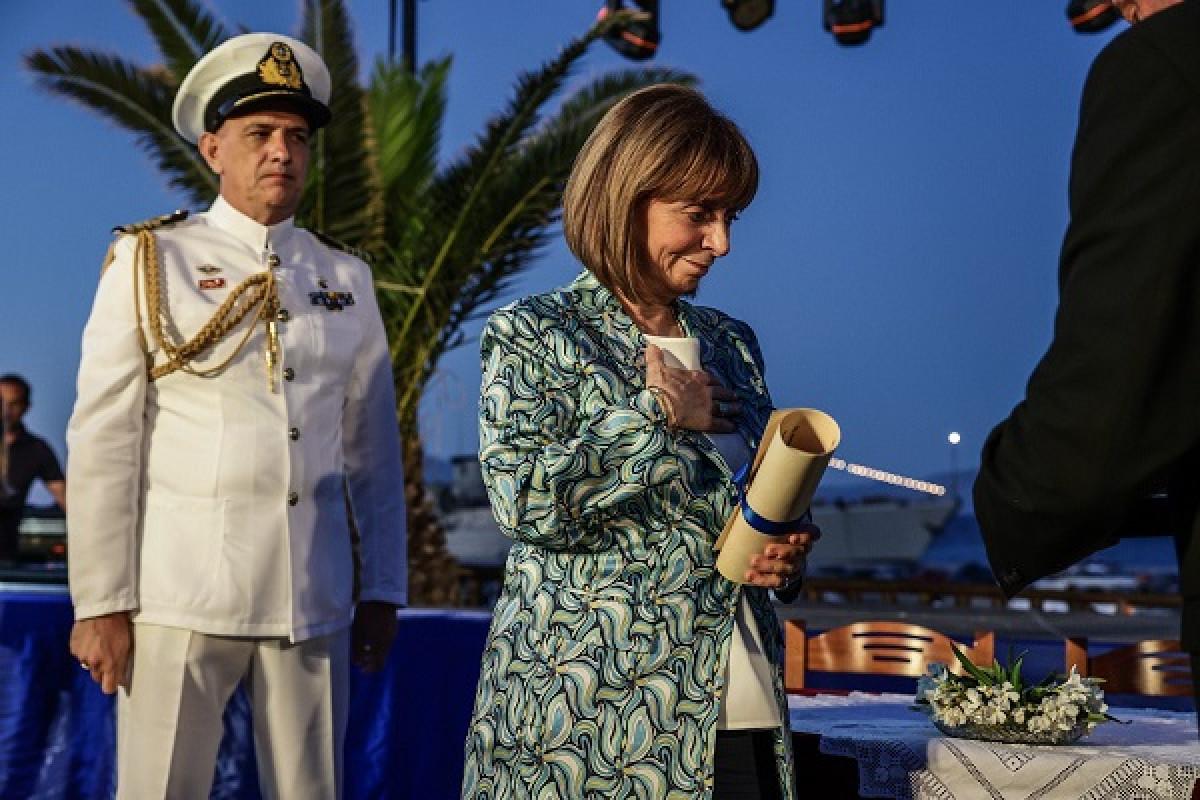 Η Πρόεδρος της Δημοκρατίας Κατερίνα Σακελλαροπούλου, στο πλαίσιο της επίσκεψής της στην Ηρωική Νήσο Κάσο για την επέτειο των 200 χρόνων από το Ολοκαύτωμα, ξεναγήθηκε στην έκθεση «Η Ευζωνική στολή – Η ιστορική διαδρομή της μέσα από 40 έργα του Γιάννη Μυλωνά», στο Γυμνάσιο του νησιού.
