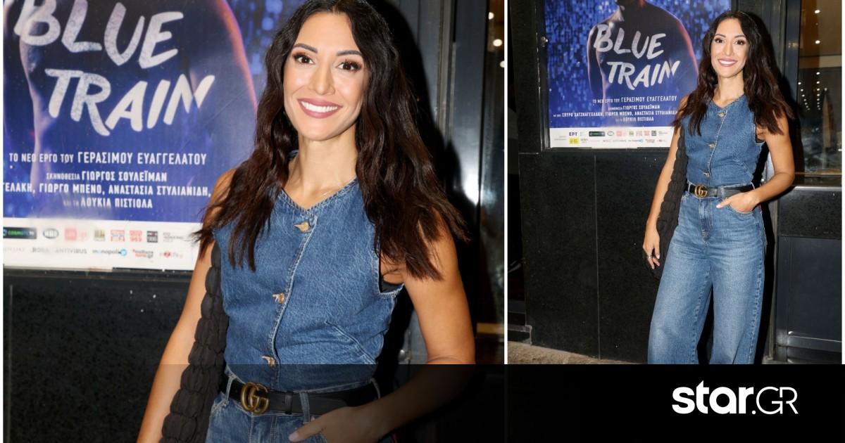 Denim look επέλεξε η Ευγενία Σαμαρά για την εμφάνισή της σε θεατρική πρεμιέρα.