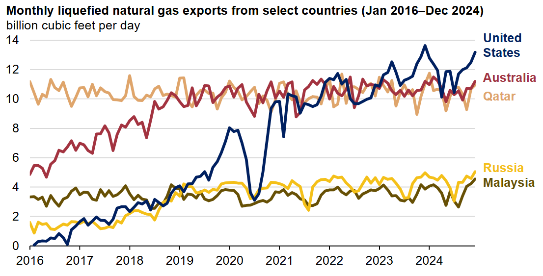 Οι ΗΠΑ αποτελούν τον μεγαλύτερο εξαγωγέα LNG. Πηγή: EIA.