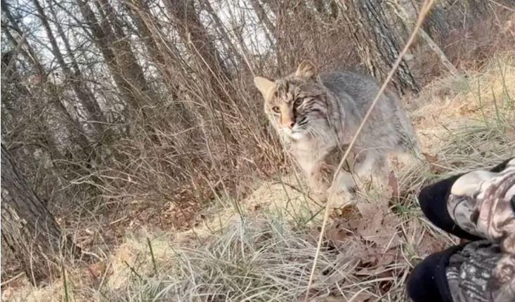Ο 19χρονος κυνηγός έβγαλε γρήγορα το κινητό του για να καταγράψει τη συνάντηση, καθώς η αγριόγατα πλησίαζε σιγά-σιγά προς το μέρος του, όπως δείχνει το βίντεο που δημοσίευσε στη σελίδα του στο Instagram.