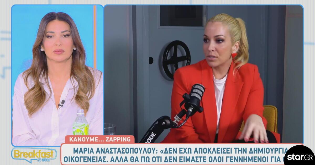 Στο ίδιο πλαίσιο η Μαρία Αναστασοπούλου συμπλήρωσε: «Δεν αισθάνθηκα τον χωρισμό μου αποτυχία σε καμία περίπτωση. Εγώ αισθάνομαι ότι η κάθε επιλογή μας -γιατί ποτέ δεν μπορείς να προβλέψεις πώς θα στα φέρει η ζωή- μας πάει παρακάτω. Εκείνη τη στιγμή βλέπεις μαύρη μαυρίλα, ότι μας έχει βρει το μεγαλύτερο κακό. Σας καταλαβαίνω αν το αισθάνεστε. Μας έχει βρει τεράστιο κακό, πώς τα πράγματα ήρθαν έτσι; Όταν όμως αφήσεις τον εαυτό σου να αισθανθεί, να εκφράσεις το συναίσθημα ή όχι, δεν υπάρχει κανόνας ότι “Μένω στο σπίτι και πρέπει να κλαίω κάθε μέρα”. Εγώ δεν έμεινα καθόλου στο σπίτι, το διαχειρίστηκα και νομίζω ότι ο κάθε άνθρωπος μπορεί να βρει τον τρόπο να το διαχειριστεί».
