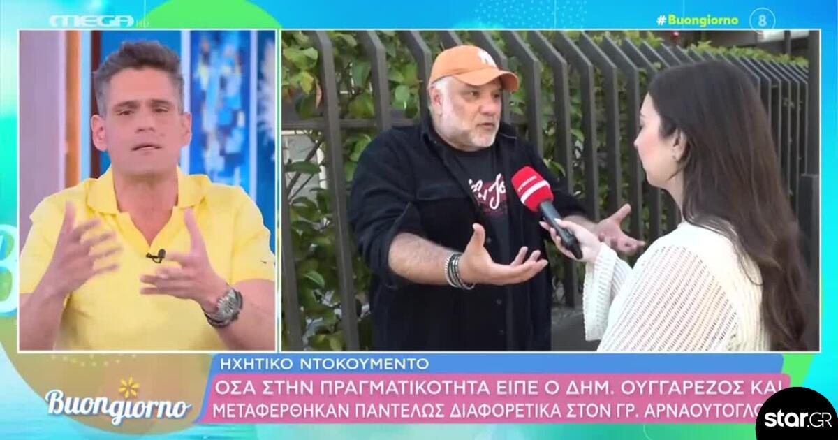 Να απαντήσει σε όλα αυτά που είπε ο Γρηγόρης Αρναούτογλου για εκείνον πως “ ο καημένος κάνει μια απεγνωσμένη προσπάθεια να πάει καλά στο ραδιοφώνο όμως τελικά δεν πηγαίνει, και πως “καλύτερα να ασχοληθεί με τη δική του εκπομπή και να αφήσει τη δική του(σ.σ: του Γρηγόρη) και τις αντίπαλες στην ησυχία τους, έδωσε για πρώτη φορά ο Δημήτρης Ουγγαρέζος μέσα από την εκπομπή Buongiorno.