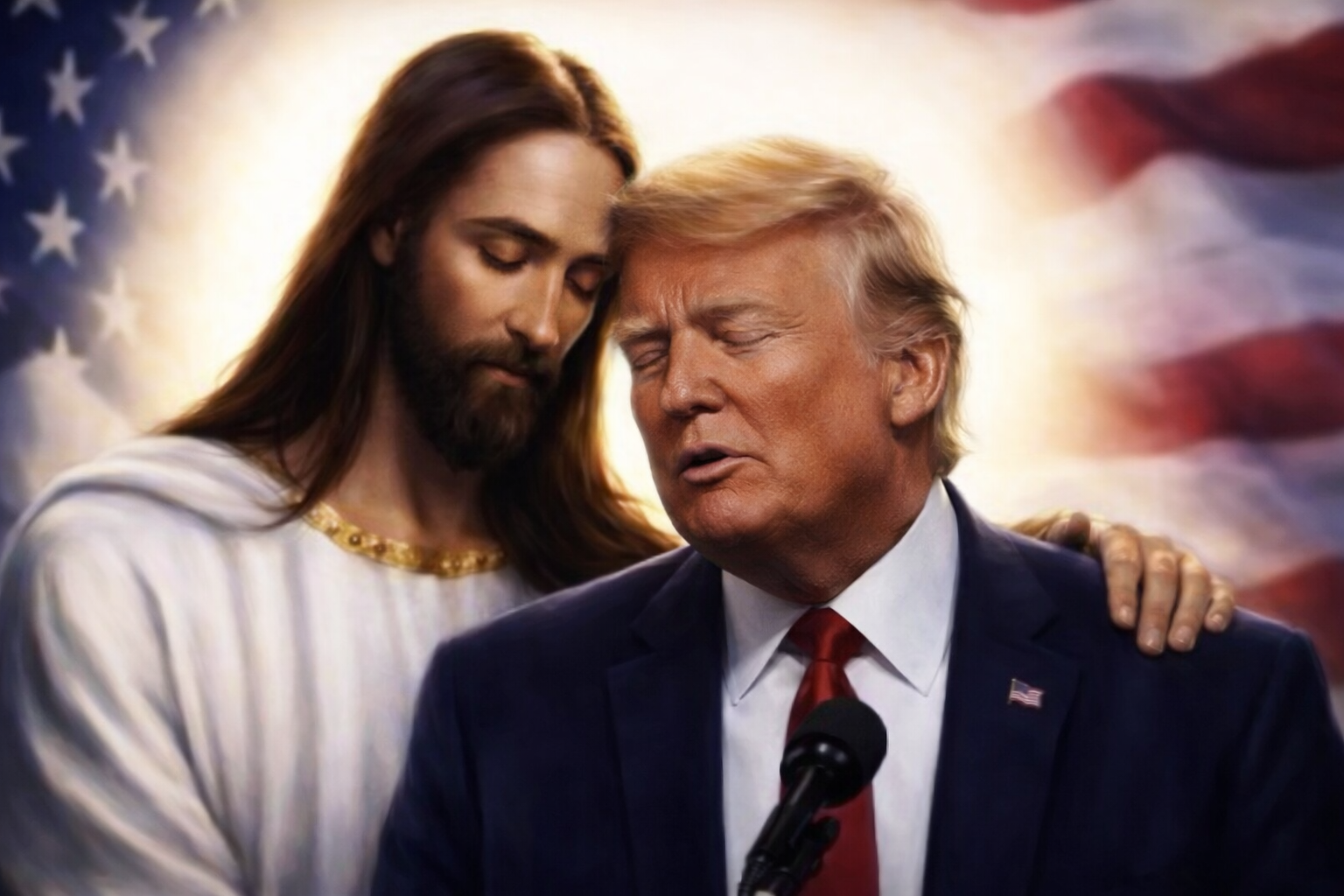 Μετά τη σφοδρή κριτική που δέχτηκε πριν λίγες ημέρες όταν συνέκρινε τον εαυτό του με τον Ιησού, ο πρόεδρος των ΗΠΑ Ντόναλντ Τραμπ χτύπησε και πάλι αναρτώντας στο δικό του κοινωνικό δίκτυο Truth Social μια φωτογραφία του που δημιουργήθηκε από τεχνητή νοημοσύνη και τον απεικονίζει σε αγκαλιά με τον Ιησού, ενώ στο φόντο κυματίζει η αμερικανική σημαία.