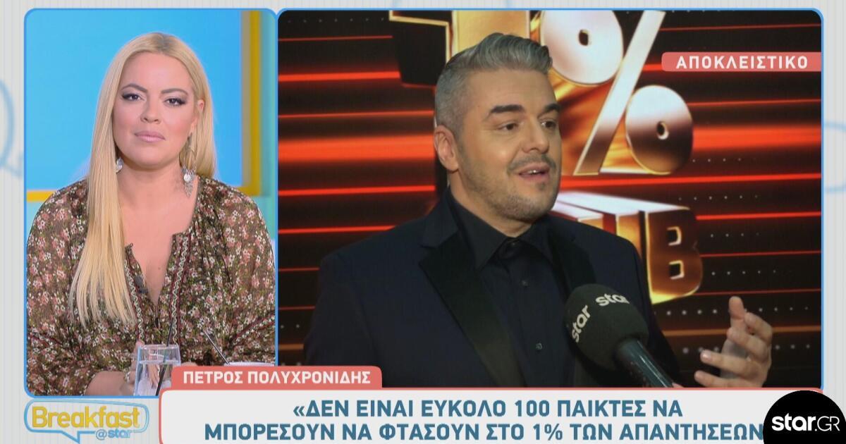 Θα δούμε 100 παίκτες να προσπαθούν να φτάσουν το 1%. Είναι εύκολο για να γίνει αυτό; «Νομίζω θα το μάθουμε μαζί αν είναι εύκολο, αλλά αν ήταν εύκολο δε θα λεγόταν 1%, γιατί θα απαντούσαν στις ερωτήσεις που βάζουμε περισσότεροι άνθρωποι. Αλλά για σκεφτείτε λίγο, ποιοι είναι αυτοί που μπορούν να απαντήσουν στην ερώτηση που απάντησε μόνο το 1% των Ελλήνων; Οι 100 θα είναι εδώ μαζί μας σε απόσταση αναπνοής.