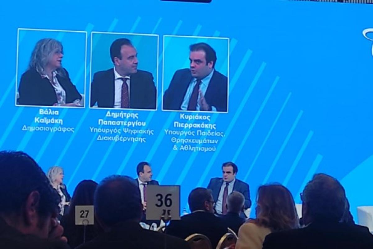 Ο κ. Πιερρακάκης μίλησε για το πόσο σημαντική είναι η διείσδυση» της τεχνολογίας στις μικρομεσαίες επιχειρήσεις», που είναι άλλωστε η πλειοψηφία των ελληνικών επιχειρήσεων, Ακόμη, αναφέρθηκε στην ανάγκη για αναβάθμιση και αύξηση των τμημάτων πληροφορικής στα πανεπιστήμια, κάτι που δεν αναμένεται, όπως είπε, να συμβεί βραχυπρόθεσμα, καθώς και στην ανάγκη για αναβάθμιση του μαθήματος της πληροφορικής στα σχολεία. Ως προς αυτό, το δεύτερο σκέλος, ανέφερε ότι το 2026 αναμένεται η αντικατάσταση των σχολικών βιβλίων, μεταξύ των οποίων και αυτών της πληροφορικής τα οποία και χαρακτήρισε ακατάλληλα.