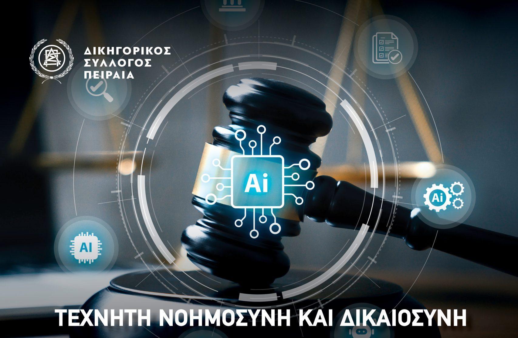 Ο Δικηγορικός Σύλλογος Πειραιά, συνεχίζοντας τις επιστημονικές πρωτοβουλίες του σχετικά με την «Τεχνητή Νοημοσύνη στη Δικαιοσύνη», διοργανώνει Ημερίδα την Τρίτη 17 Μαρτίου, ώρα 18.00, στην αίθουσα εκδηλώσεων του Συλλόγου.