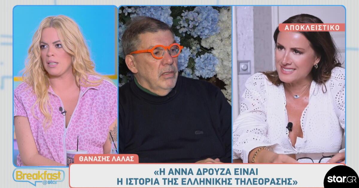 «Η Άννα Δρούζα είναι η ιστορία της ελληνικής τηλεόρασης» είπε αναφερόμενος στη σύντροφό του, που τα τελευταία χρόνια απουσιάζει από τη μικρή οθόνη.