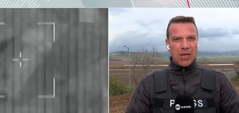 Ο ανταποκριτής περιγράφει το σημείο της κάλυψης: «Πίσω μου είναι ο τοίχος που σηματοδοτεί τα σύνορα με τον Λίβανο. Ακριβώς πίσω από αυτόν βλέπετε τα απομεινάρια των οικισμών που υπήρχαν πριν από το 2024» αναφέρει, ενώ σε πλήρη εξέλιξη ιδιαίτερα έντονη στιγμή.